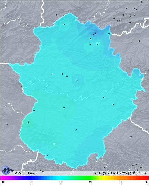 | Sierra de Fuentes | 410 | 10,4 | 11,2 | 10,4 | 95 | 95 | 93 | 1.013 | 1.014 | 1.013 | 8 SSE | 22 | 0,8 | 113,7 | |