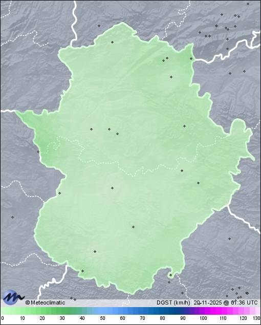 | Guijo de Santa Bárbara | 910 | 3,3 | 3,5 | 3,3 | 88 | 88 | 88 | 1.022 | 1.023 | 1.022 | 3 ENE | 4 | x | x | |