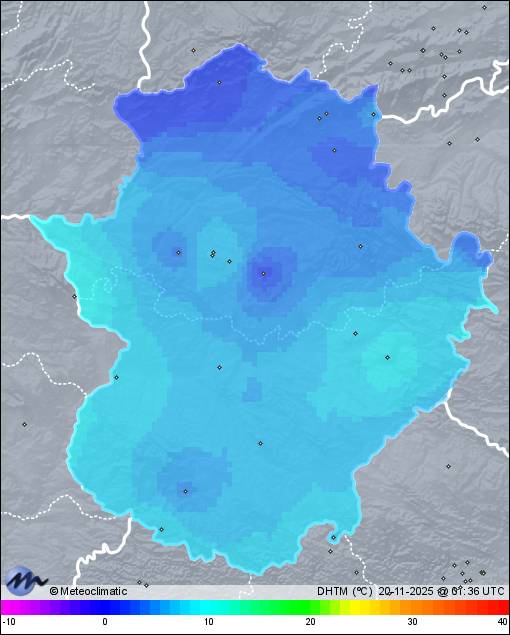 | Escarcha | | Actualizado: 00:03 UTC | 1,7°C 94% | 2,2 °C / 94% |  | | 1,6°C / 93% | | Calma | | 4 km/h | | 1.019 hPa |