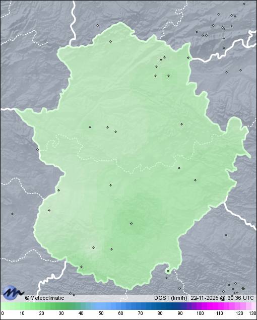 | Madrigal de la Vera | 401 | 2,6 | 3,3 | 2,6 | 80 | 80 | 76 | 1.032 | 1.032 | 1.032 | 3 NNW | 8 | - | 1.177,8 | |
