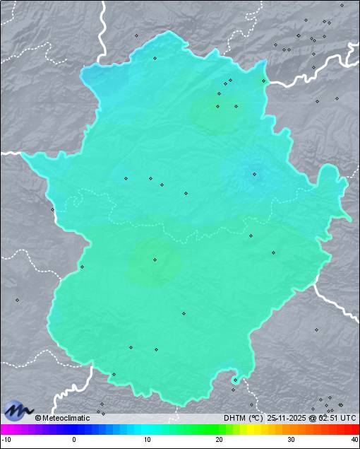 | Esparragosa de Lares | 480 | 12,5 | 12,8 | 12,5 | 99 | 99 | 99 | 1.016 | 1.017 | 1.016 | 8 WNW | 13 | - | 613,9 | |