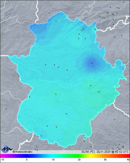 | Valverde de Burguillos | 420 | 12,7 | 13,0 | 12,7 | 99 | 99 | 99 | 1.012 | 1.013 | 1.012 | - | 0 | 0,3 | 564,9 | |