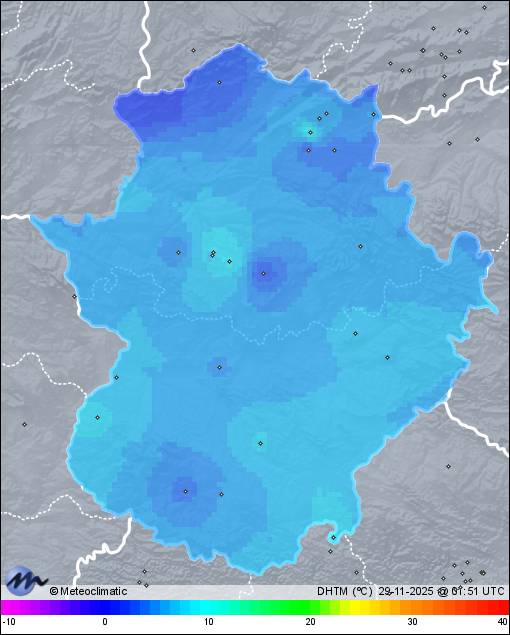| Actualizado: 00:31 UTC | -3,2°C 72% | -2,4 °C / 72% |  | | -3,2°C / 70% | | Calma | | 2 km/h | | 1.028 hPa |