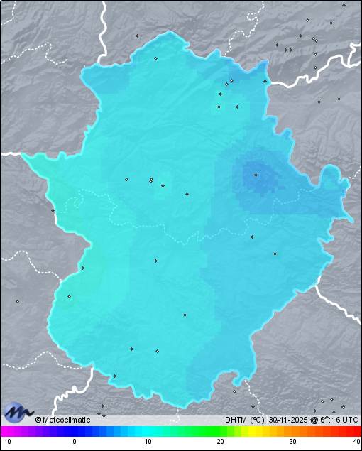 | Cáceres Norte | 395 | 9,2 | 9,4 | 9,2 | 99 | 99 | 98 | 1.016 | 1.017 | 1.016 | 3 SSE | 9 | - | 766,3 | |