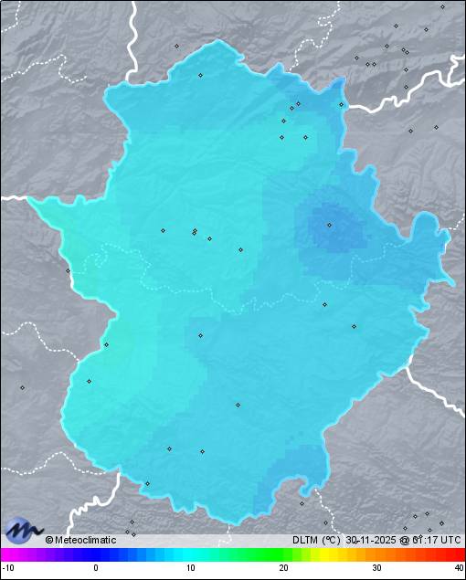 | Valverde de Burguillos | 420 | 8,5 | 8,5 | 8,4 | 99 | 99 | 98 | 1.013 | 1.013 | 1.012 | - | 0 | 1,0 | 566,1 | |