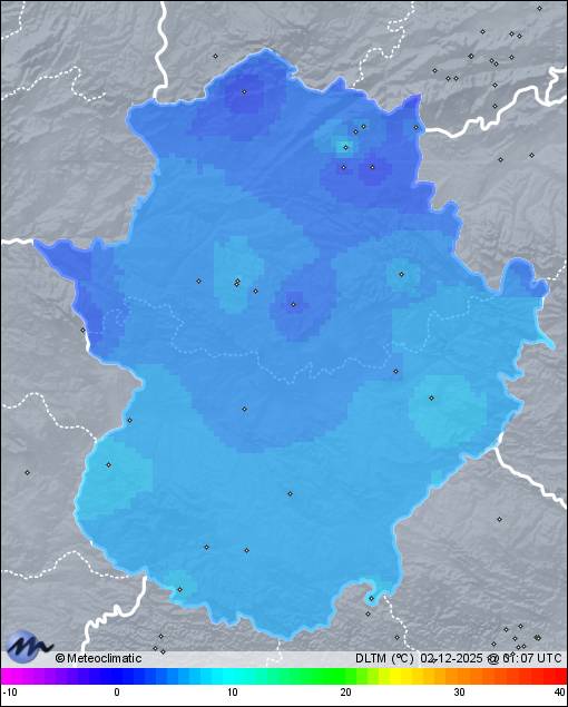 | Actualizado: 00:13 UTC | 7,3°C 94% | 7,3 °C / 95% | | 7,0°C / 94% | | Calma | | 0 km/h | | 1.020 hPa |