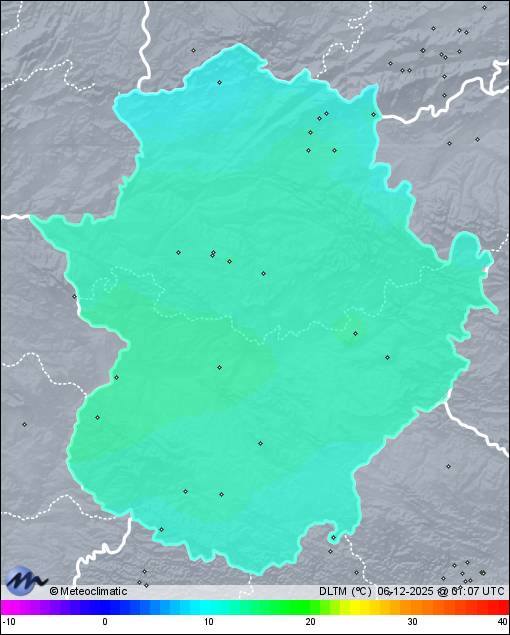 | Jaraíz de la Vera | 565 | 12,9 | 13,0 | 12,9 | 97 | 97 | 97 | 1.025 | 1.025 | 1.024 | 3 WSW | 24 | - | 1.780,8 | |