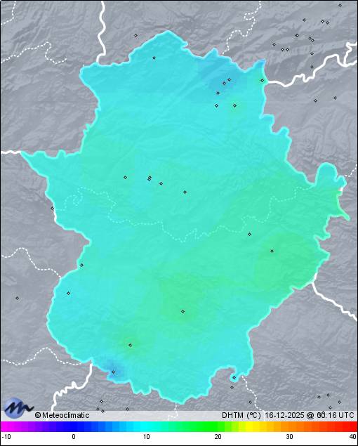 | Jaraíz de la Vera | 565 | 9,7 | 11,9 | 9,6 | 88 | 88 | 78 | 1.018 | 1.021 | 1.018 | 1 W | 11 | - | 1.854,2 | |