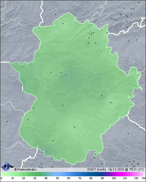 | Actualizado: 11:13 UTC | 4,6°C 89% | 5,0 °C / 93% | | 3,5°C / 85% | | 6 km/h ENE | | 45 km/h | | 1.009 hPa | | 1,7 mm |