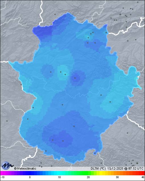 | Actualizado: 06:13 UTC | 8,7°C 85% | 9,5 °C / 91% | | 6,8°C / 83% | | 5 km/h N | | 15 km/h | | 1.039 hPa |