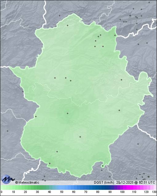| Sierra de Fuentes | 410 | 9,4 | 9,8 | 9,4 | 96 | 96 | 95 | 1.018 | 1.019 | 1.018 | 3 S | 7 | - | 213,5 | |
