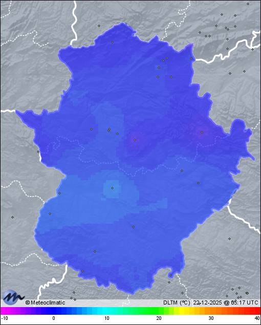 | Actualizado: 01:13 UTC | 3,9°C 95% | 4,7 °C / 95% | | 3,9°C / 95% | | Calma | | 15 km/h | | 1.009 hPa |