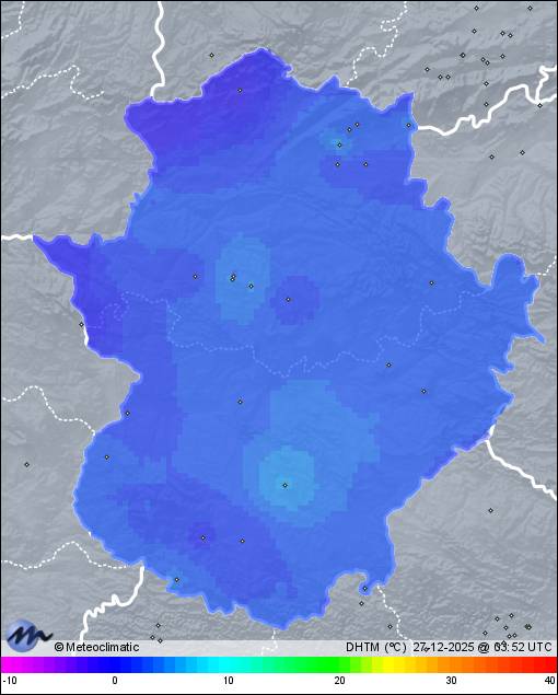 | Niebla heladora | | Actualizado: 01:47 UTC | -2,1°C 96% | -0,9 °C / 96% |  | | -2,1°C / 95% | | Calma | | 2 km/h | | 1.016 hPa |