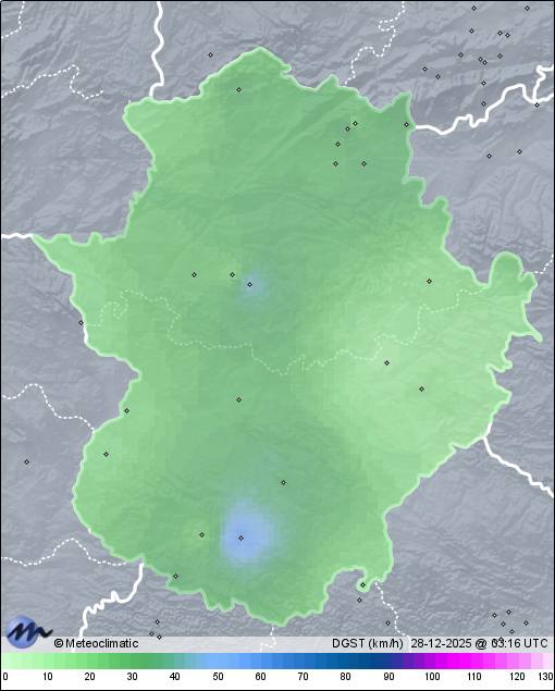 | Actualizado: 01:13 UTC | 9,9°C 94% | 10,0 °C / 95% | | 9,8°C / 93% | | 1 km/h ENE | | 11 km/h | | 1.014 hPa | | 0,2 mm |