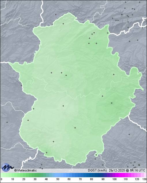 | Aldeanueva de la Vera | 667 | 6,4 | 7,6 | 6,3 | 81 | 81 | 79 | 1.020 | 1.020 | 1.019 | 3 WNW | 8 | - | 1.655,4 | |
