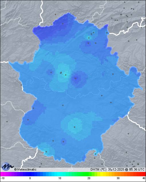 | Escarcha | | Actualizado: 01:58 UTC | 0,5°C 94% | 0,8 °C / 94% | | 0,1°C / 93% | | Calma | | 2 km/h | | 1.025 hPa |