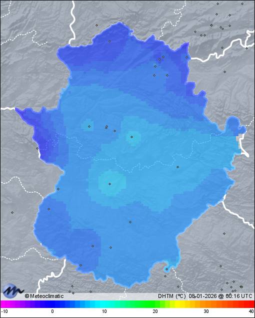 | 07-01-2026 | | | Máx. | Mín. | | | Temperatura | 8,1 | -1,1 | °C | | Humedad | 96 | 68 | % | | Viento | 7 | n/a | km/h | | Precipitación | 0,0 | mm |