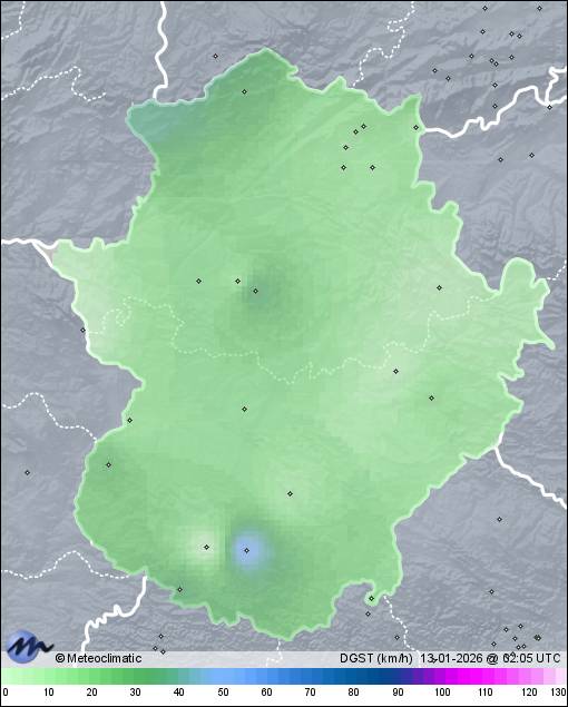 | Actualizado:12-01-2026 21:05 UTC | 4,0°C 85% | 7,6 °C / 99% |  | | -2,9°C / 80% | | 7 km/h W | | 33 km/h | | 1.017 hPa |