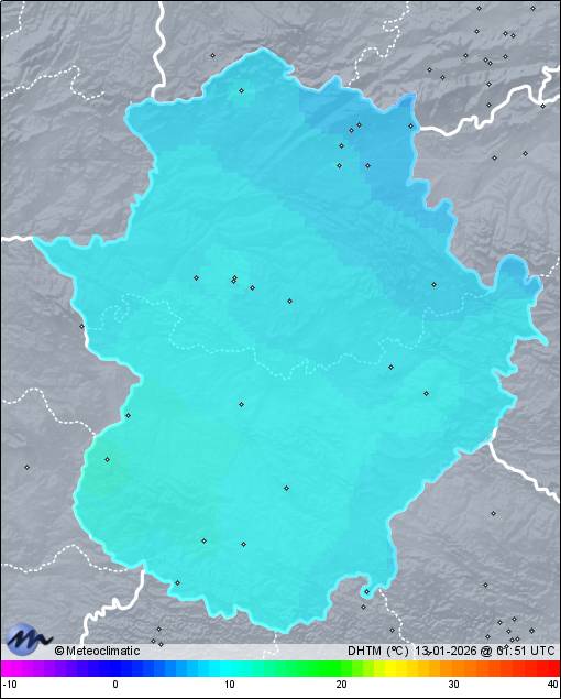 | Valverde de Burguillos | 420 | 10,6 | 10,7 | 10,3 | 84 | 84 | 82 | 1.011 | 1.012 | 1.011 | - | 0 | - | 8,9 | |