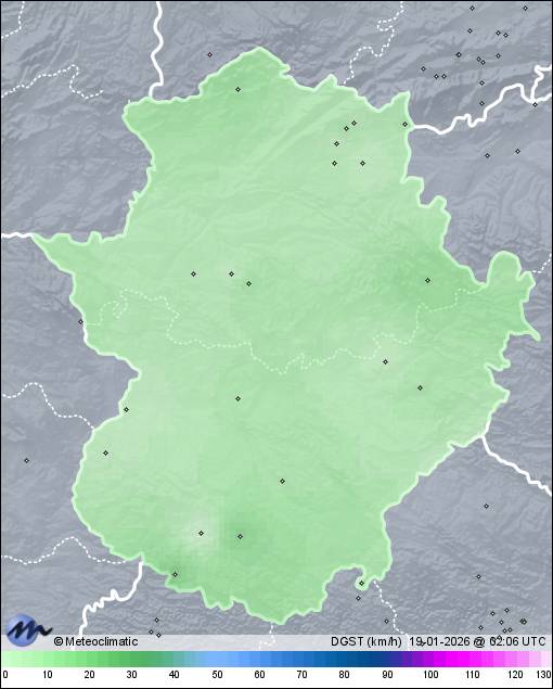 | Sierra de Fuentes | 410 | 4,2 | 4,8 | 4,1 | 78 | 78 | 75 | 1.019 | 1.019 | 1.019 | 7 NW | 13 | - | 12,5 | |