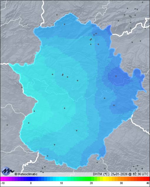 | Actualizado: 00:50 UTC | 5,7°C 88% | 7,5 °C / 88% |  | | 5,7°C / 82% | | Calma | | 0 km/h | | 1.018 hPa |