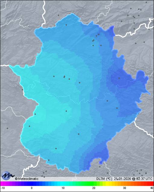 | Actualizado: 00:50 UTC | 5,7°C 88% | 7,5 °C / 88% |  | | 5,7°C / 82% | | Calma | | 0 km/h | | 1.018 hPa |