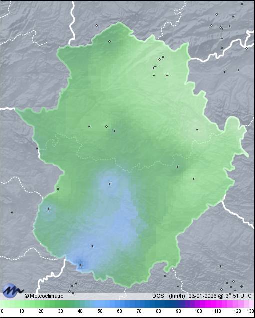 | Actualizado: 00:29 UTC | 3,7°C 89% | 3,9 °C / 90% | | 3,4°C / 88% | | 22 km/h SSE | | 33 km/h | | 1.005 hPa |