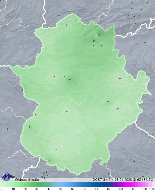 | Sierra de Fuentes | 410 | 10,6 | 10,7 | 10,3 | 86 | 87 | 85 | 1.016 | 1.016 | 1.015 | 7 WSW | 26 | - | 49,0 | |
