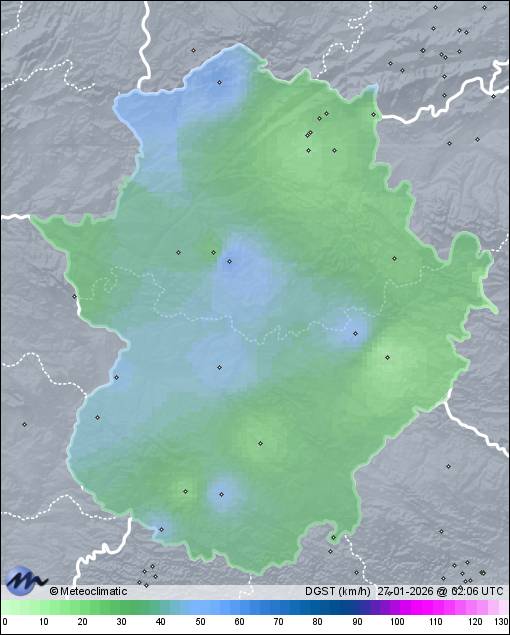 | Sierra de Fuentes | 410 | 11,6 | 12,1 | 11,6 | 85 | 85 | 82 | 1.008 | 1.009 | 1.008 | 21 SSW | 55 | - | 54,1 | |