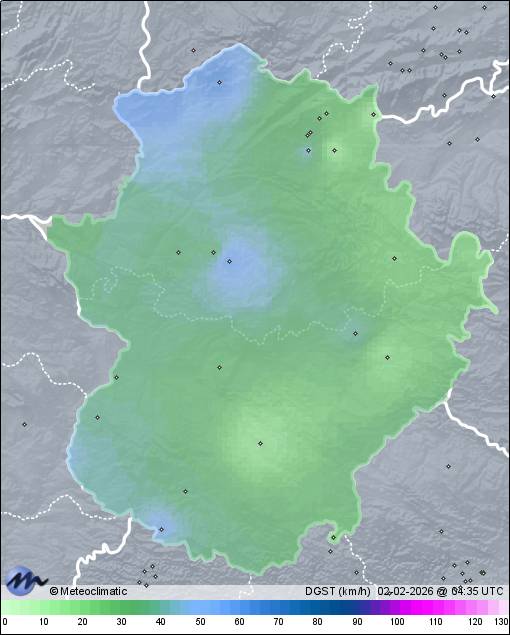 | Actualizado: 01:29 UTC | 8,5°C 85% | 8,6 °C / 89% | | 7,6°C / 84% | | 10 km/h S | | 59 km/h | | 1.003 hPa | | 0,2 mm |