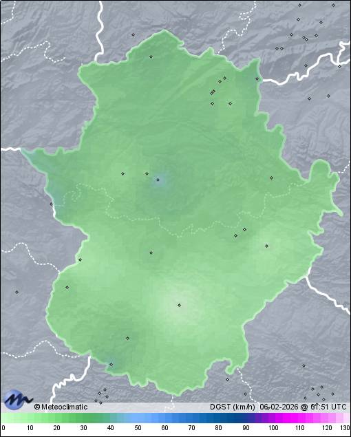 | Sierra de Fuentes | 410 | 9,9 | 9,9 | 9,9 | 87 | 88 | 87 | 1.003 | 1.004 | 1.003 | 24 SSW | 30 | - | 174,6 | |