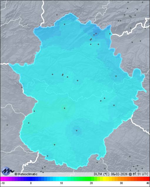 | Valverde de Burguillos | 420 | 10,8 | 10,9 | 10,8 | 91 | 91 | 90 | 1.000 | 1.000 | 999 | 14 WNW | 20 | - | 225,3 | |