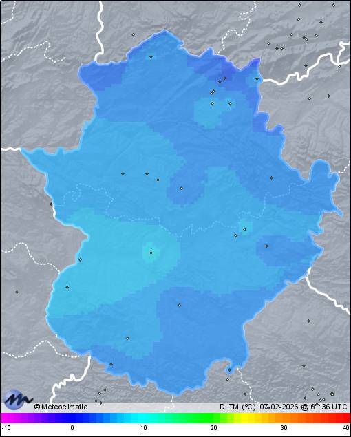 | Actualizado: 00:13 UTC | 6,8°C 94% | 7,0 °C / 94% | | 6,8°C / 94% | | Calma | | 2 km/h | | 1.034 hPa |