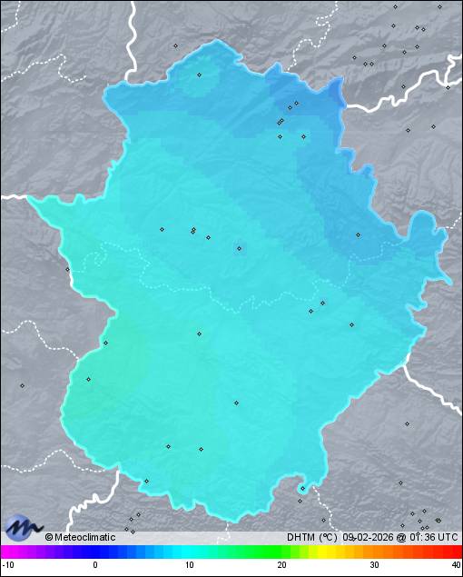 | Sierra de Fuentes | 410 | 8,8 | 8,8 | 8,7 | 97 | 97 | 96 | 1.013 | 1.013 | 1.013 | 3 SSE | 22 | 0,5 | 215,2 | |