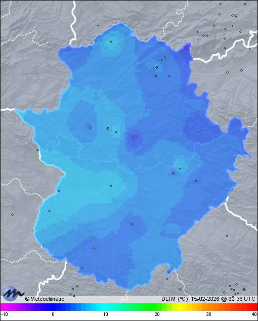 | Actualizado: 01:13 UTC | 7,8°C 81% | 8,3 °C / 82% | | 7,5°C / 79% | | 5 km/h N | | 15 km/h | | 1.049 hPa |