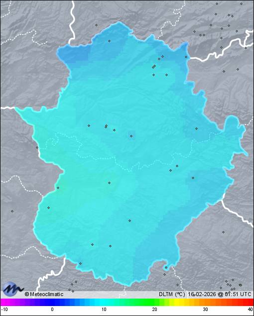 | Actualizado: 00:26 UTC | 8,6°C 89% | 12,4 °C / 92% | | 1,4°C / 71% | | 1.029 hPa |