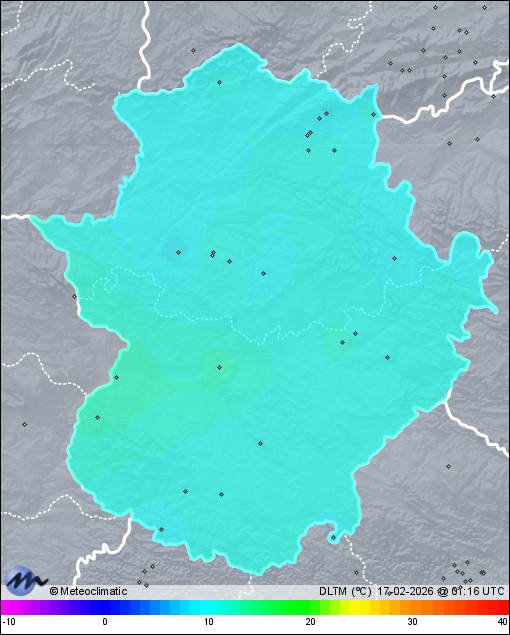 | Actualizado:16-02-2026 23:59 UTC | 12,6°C 95% | 15,6 °C / 99% | | 8,0°C / 77% | | Calma | | 9 km/h | | 1.030 hPa |