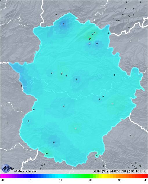 | Actualizado: 00:41 UTC | 7,1°C 94% | 8,6 °C / 94% |  | | 7,1°C / 92% | | Calma | | 2 km/h | | 1.022 hPa |