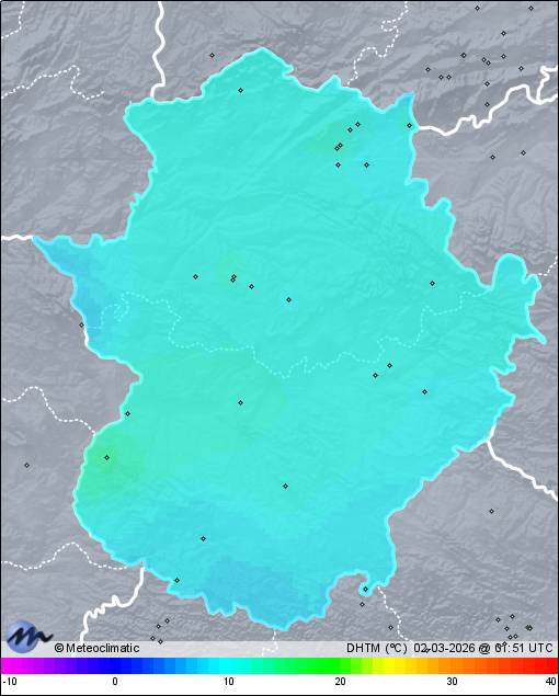 | Cáceres Norte | 395 | 11,9 | 12,1 | 11,9 | 87 | 88 | 87 | 1.016 | 1.017 | 1.016 | 3 SSW | 5 | - | 347,0 | |
