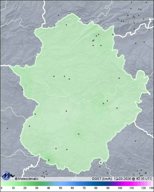 | Aldeanueva de la Vera | 667 | 7,7 | 8,1 | 7,7 | 79 | 79 | 79 | 1.029 | 1.029 | 1.029 | 6 NNW | 10 | - | 644,4 | |