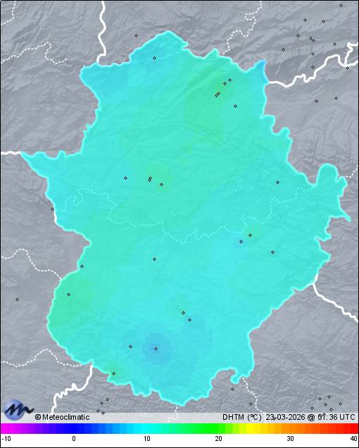 | Actualizado:22-03-2026 23:59 UTC | 10,4°C 94% | 22,3 °C / 96% | | 10,4°C / 55% | | Calma | | 7 km/h | | 1.021 hPa |