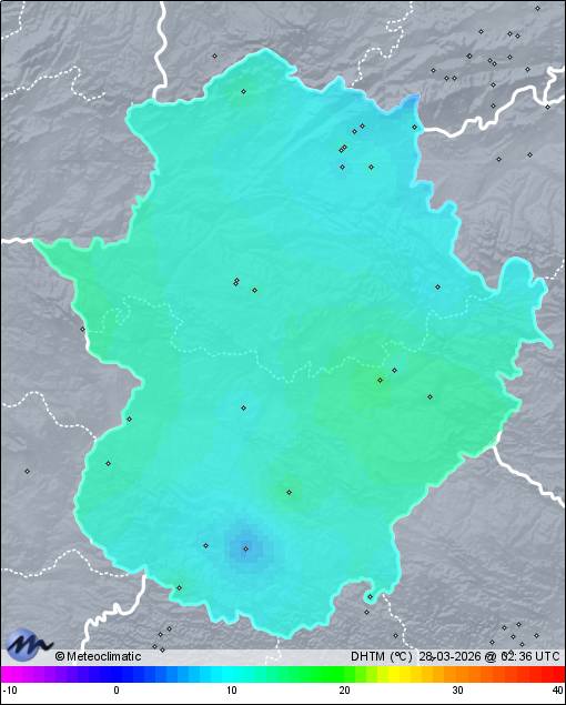 | Aldeanueva de la Vera | 667 | 7,4 | 9,1 | 7,4 | 67 | 68 | 61 | 1.022 | 1.022 | 1.021 | 3 WNW | 11 | - | 644,6 | |