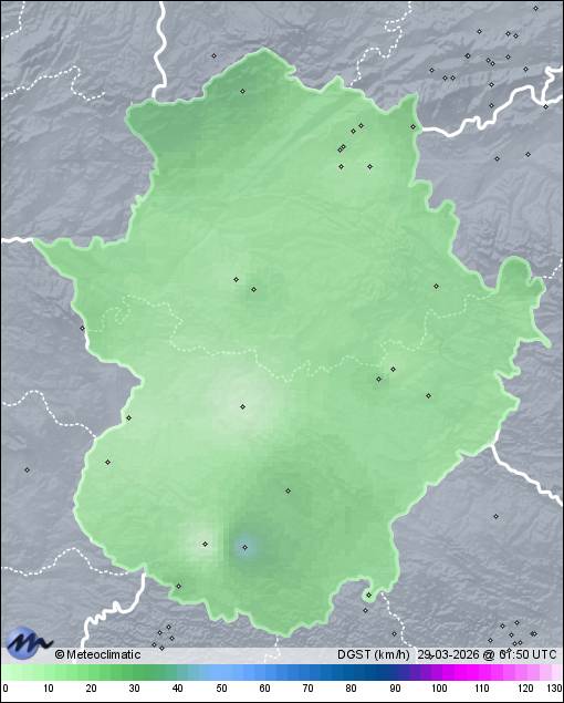 | Cáceres Norte | 395 | 10,5 | 10,9 | 10,5 | 69 | 69 | 66 | 1.027 | 1.027 | 1.026 | 2 NNE | 7 | - | 363,8 | |