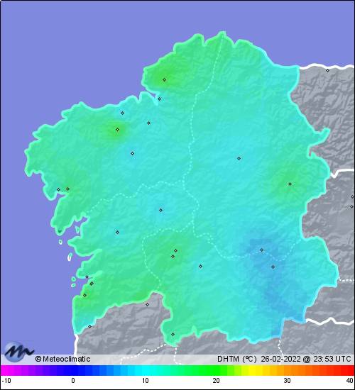 | 26-02-2022 | | | Máx. | Mín. | | | Temperatura | 16,9 | -1,4 | °C | | Humedad | 97 | 47 | % | | Presión | 1.025 | 1.017 | hPa | | Precipitación | 0,0 | mm |