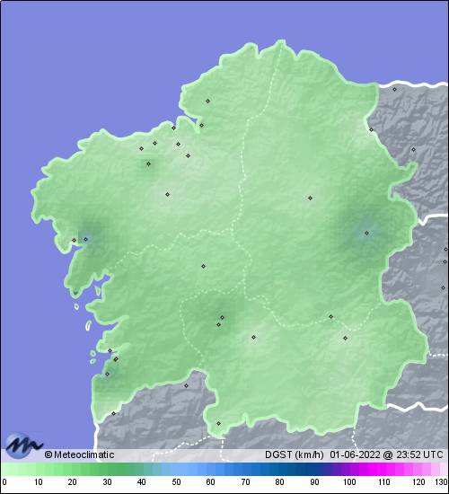 | 01-06-2022 | | | Máx. | Mín. | | | Temperatura | 22,5 | 14,5 | °C | | Humedad | 97 | 56 | % | | Viento | 30 | n/a | km/h | | Presión | 1.001 | 991 | hPa | | Precipitación | 17,7 | mm |