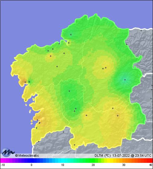 | 13-07-2022 | | | Máx. | Mín. | | | Temperatura | 39,2 | 20,6 | °C | | Humedad | 81 | 32 | % | | Viento | 23 | n/a | km/h | | Presión | 1.020 | 1.017 | hPa | | Precipitación | 0,0 | mm |