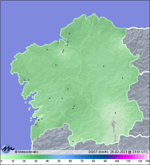 | 26-02-2023 | | | Máx. | Mín. | | | Temperatura | 12,6 | 4,8 | °C | | Humedad | 96 | 66 | % | | Viento | 44 | n/a | km/h | | Presión | 1.017 | 1.009 | hPa | | Precipitación | 0,0 | mm |