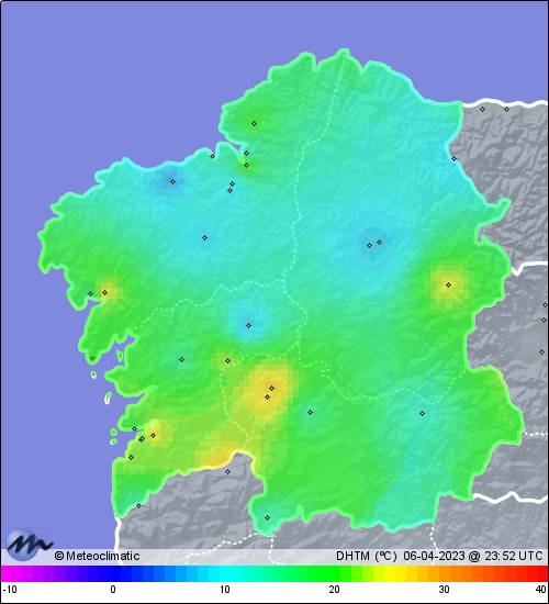 | 06-04-2023 | | | Máx. | Mín. | | | Temperatura | 23,6 | 10,9 | °C | | Humedad | 75 | 18 | % | | Viento | 35 | n/a | km/h | | Presión | 1.020 | 1.017 | hPa | | Precipitación | 0,0 | mm |