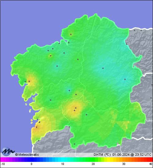 | 01-06-2024 | | | Máx. | Mín. | | | Temperatura | 22,7 | 6,9 | °C | | Humedad | 93 | 44 | % | | Viento | 35 | n/a | km/h | | Presión | 1.004 | 1.000 | hPa | | Precipitación | 0,2 | mm |