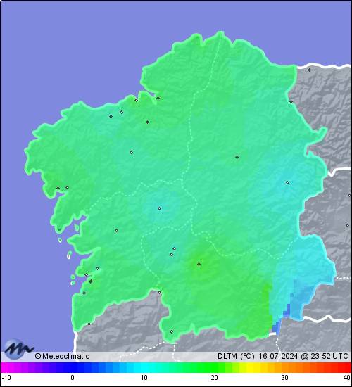 | 16-07-2024 | | | Máx. | Mín. | | | Temperatura | 24,9 | 15,6 | °C | | Humedad | 96 | 65 | % | | Viento | 20 | n/a | km/h | | Presión | 1.022 | 1.019 | hPa | | Precipitación | 0,0 | mm |
